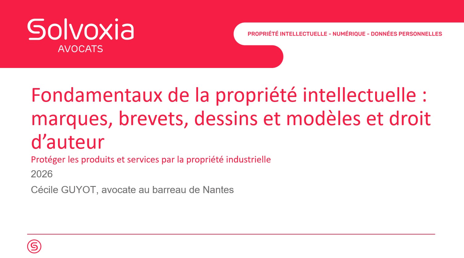 Le Cabinet SOLVOXIA Avocats a eu le plaisir par le biais de Cécile GUYOT d’intervenir auprès des élèves du M1 LEA Commerce international de Nantes dans le cadre d’un cours de 12 heures sur les fondamentaux de la propriété intellectuelle.