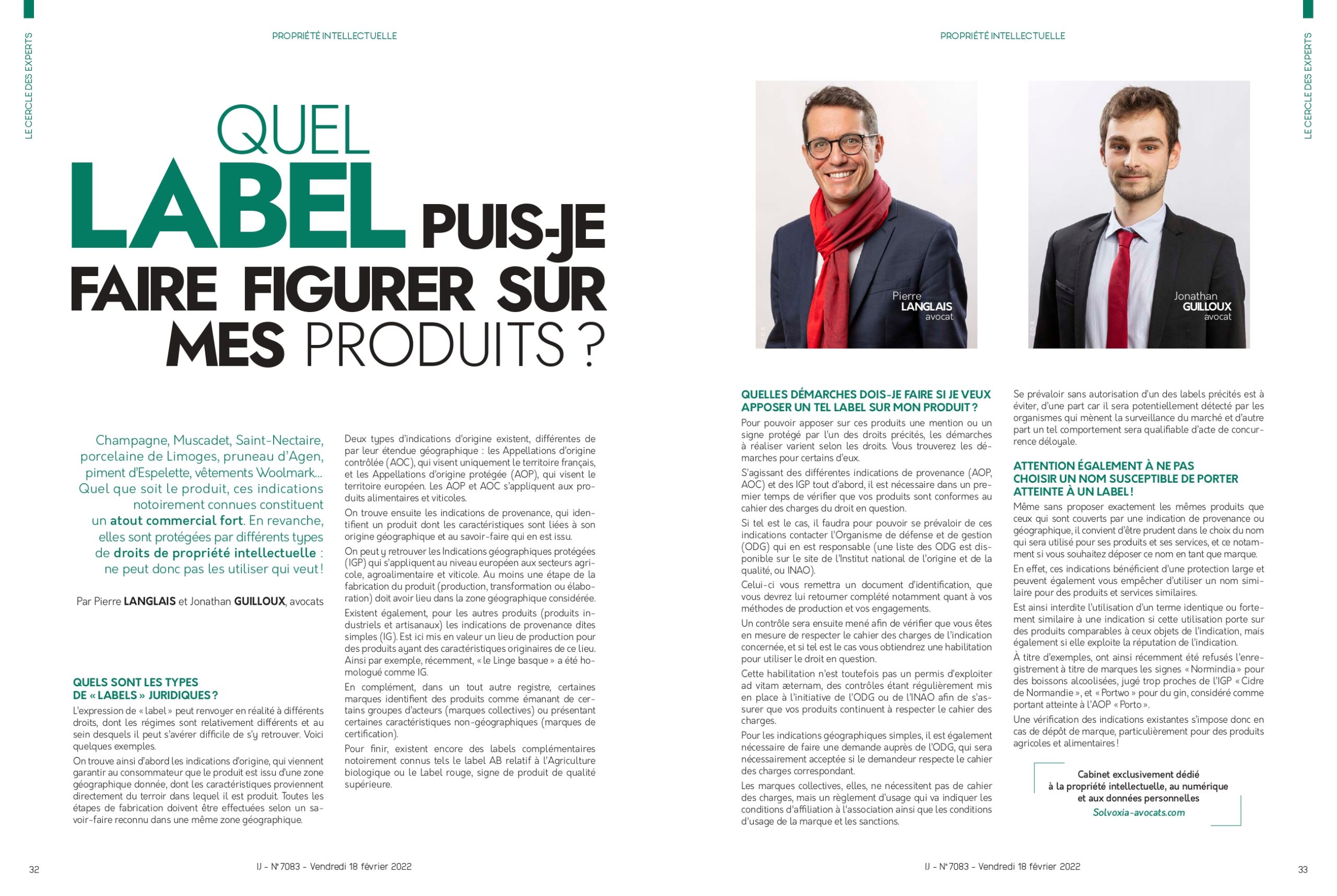 Pierre LANGLAIS et Jonathan GUILLOUX ont publié un article « Quel label puis-je faire figurer sur mes produits ? » dans l’Informateur Judiciaire du 18 février 2022.