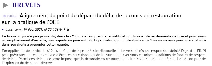 Nouveau commentaire du Cabinet ce mois-ci par Pierre LANGLAIS dans la Revue Lextenso l’Essentiel de la Propriété intellectuelle.