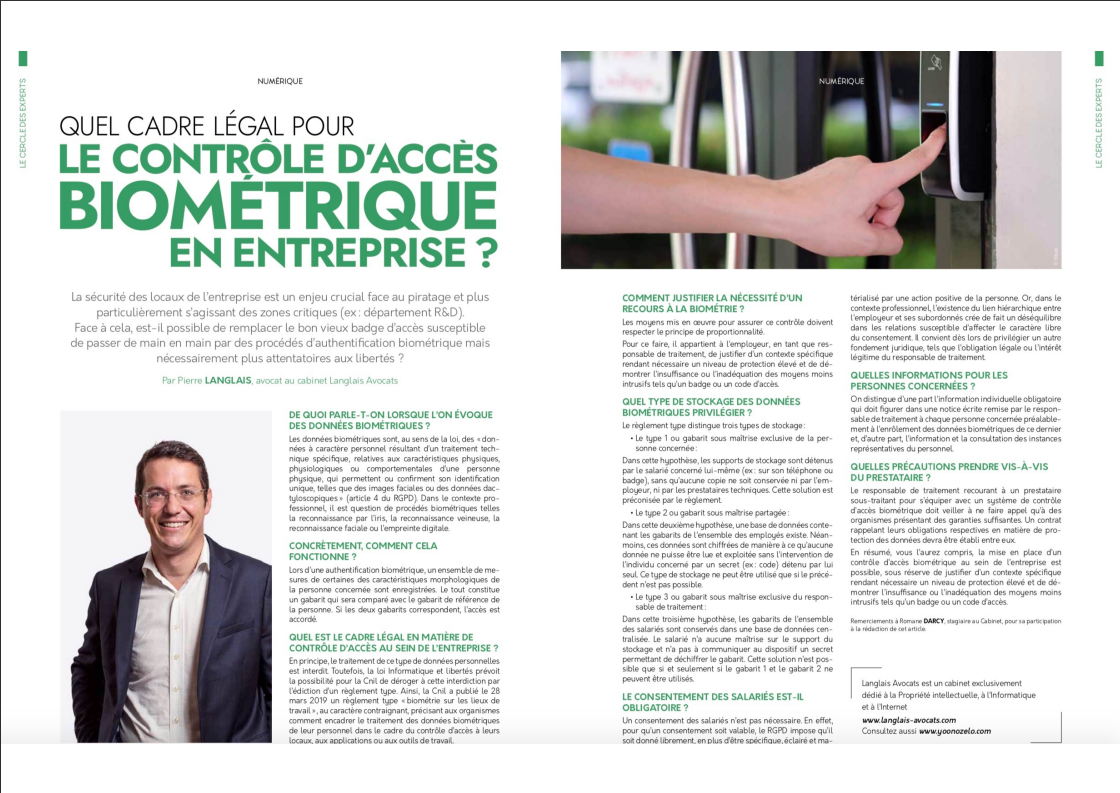 Pierre LANGLAIS a publié un article « Quel cadre légal pour le contrôle d’accès biométrique en entreprise ? » dans l’Informateur Judiciaire du 16 juillet 2021.
