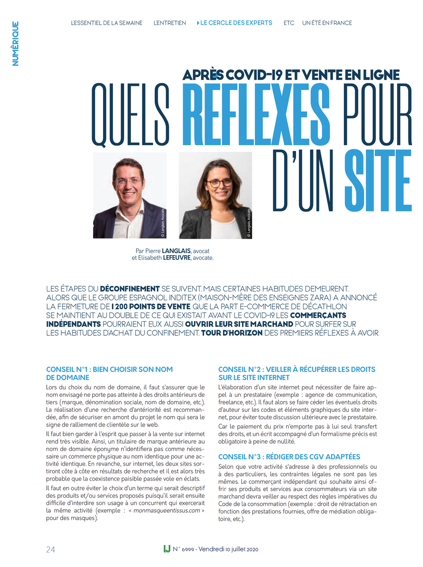 Elisabeth LEFEUVRE et Pierre LANGLAIS ont publié un article sur la vente en ligne en période de pandémie dans l’Informateur Judiciaire du 10 juillet 2020.