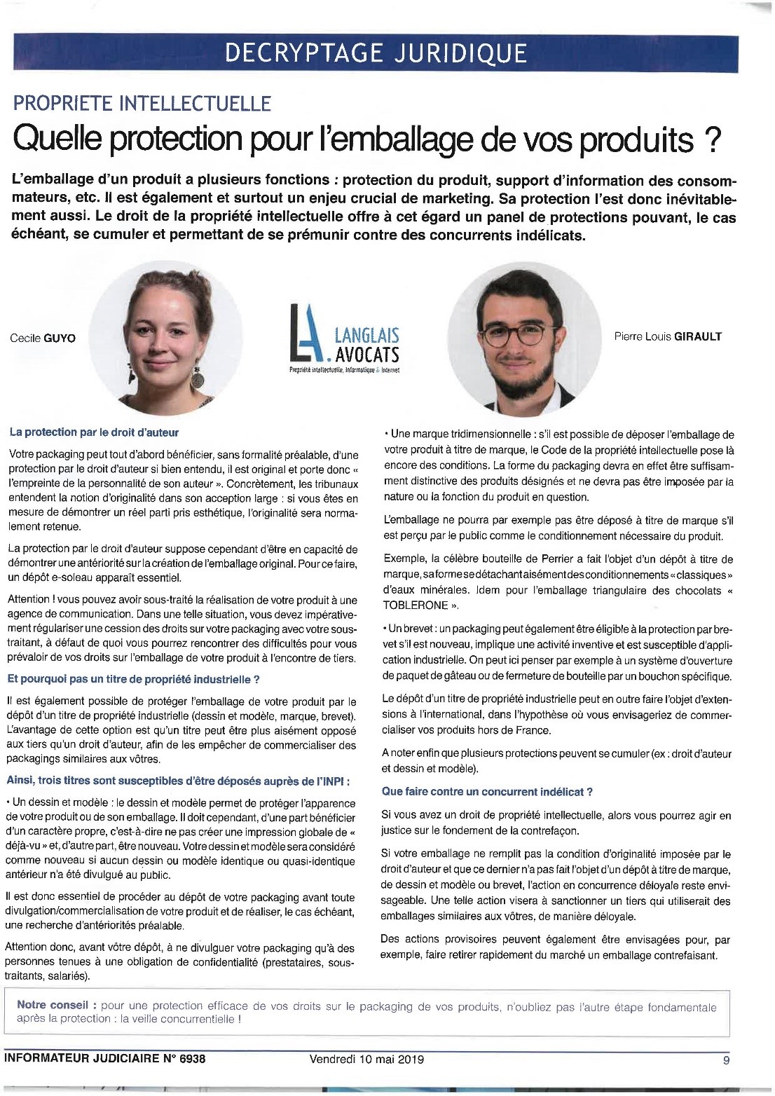Cécile GUYOT et Pierre-Louis GIRAULT ont publié un article dans dans l’Informateur Judiciaire du 10 mai 2019 :
